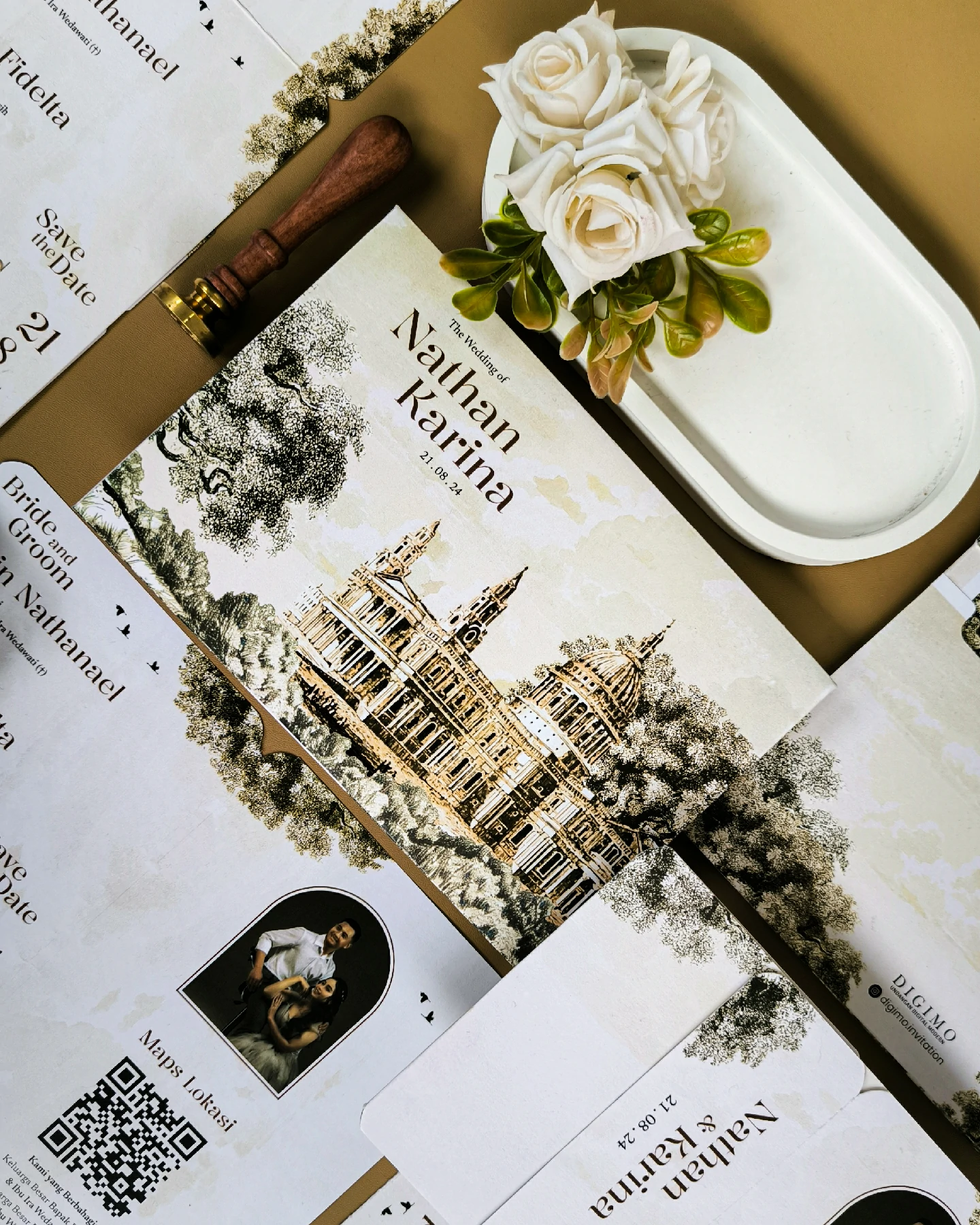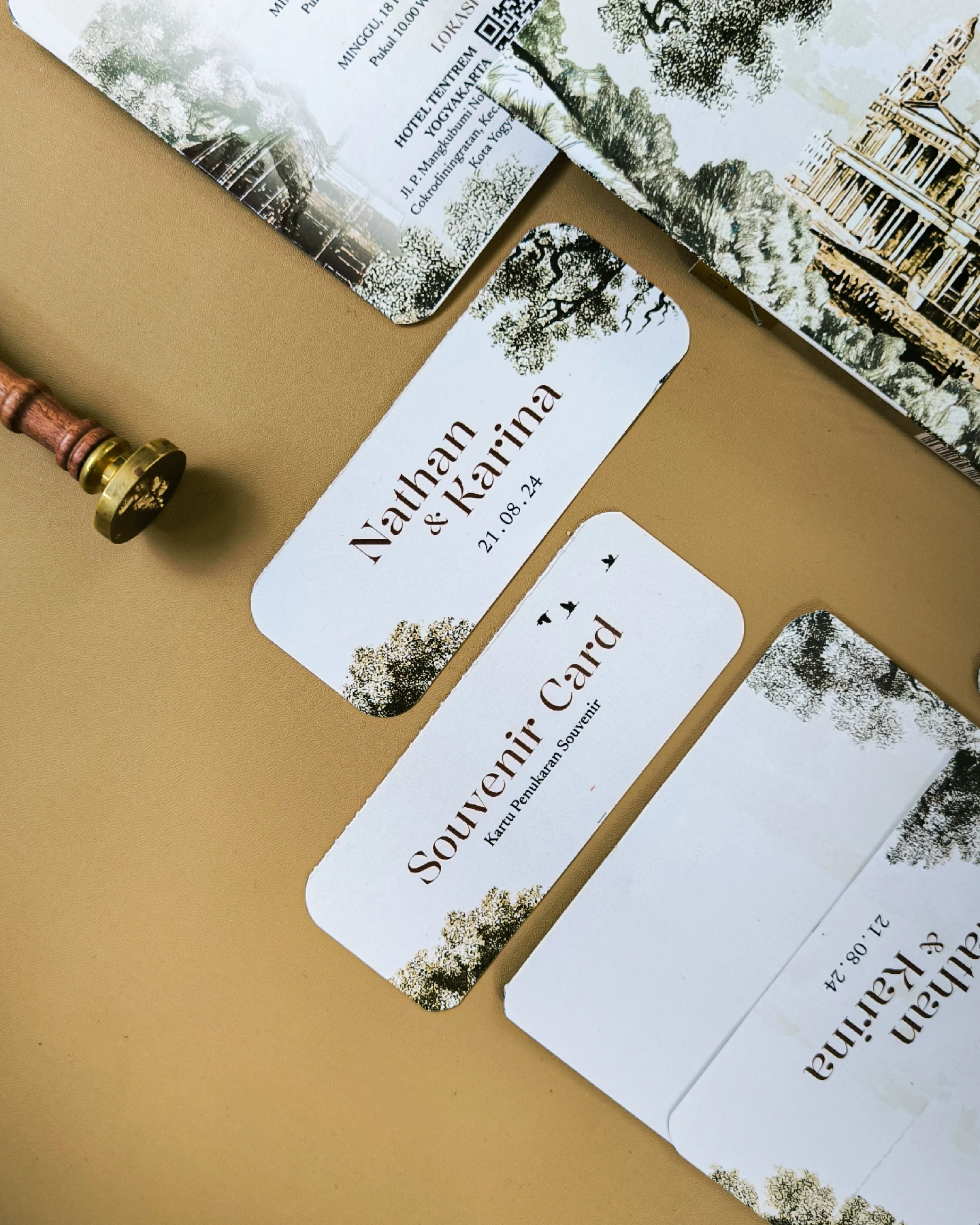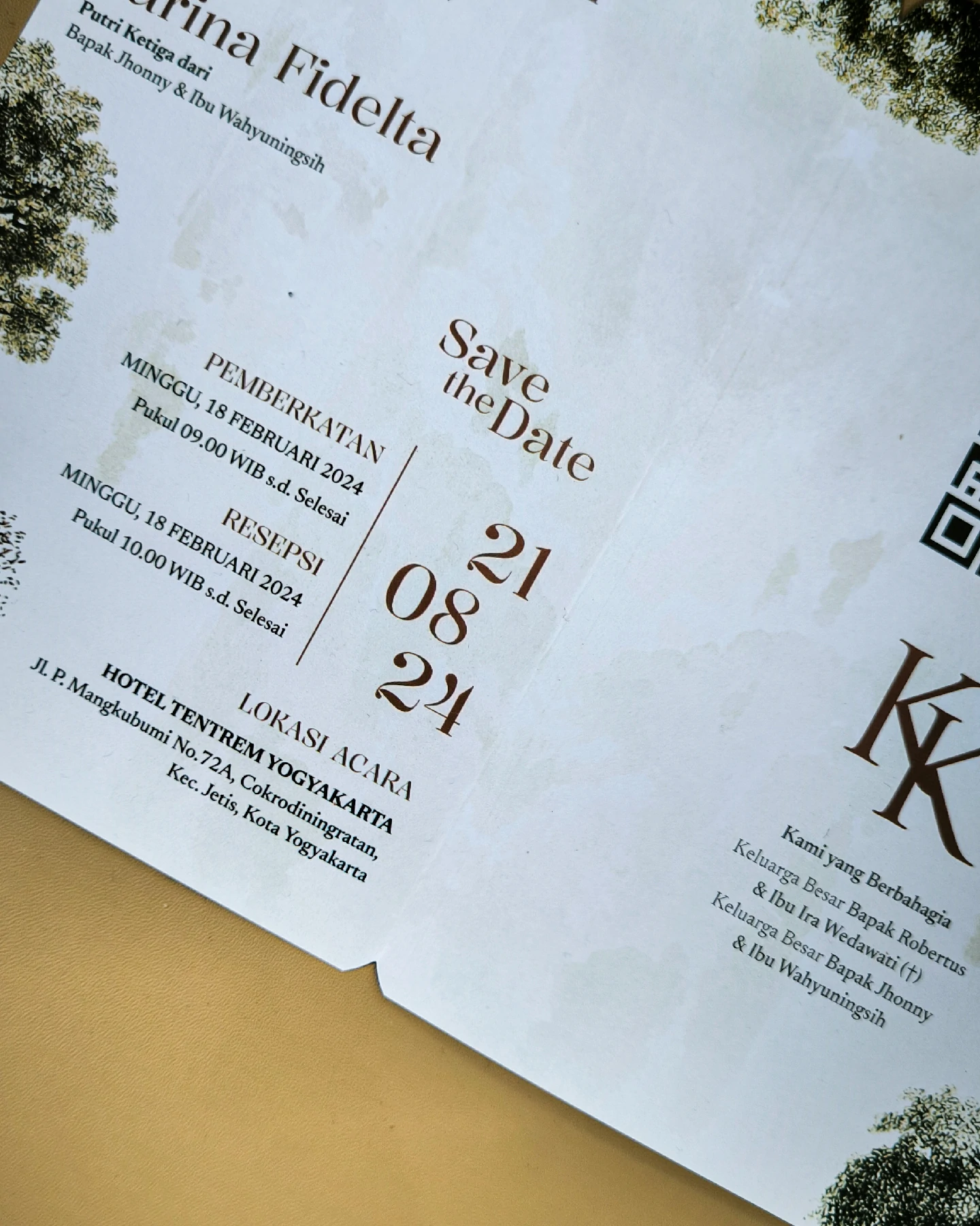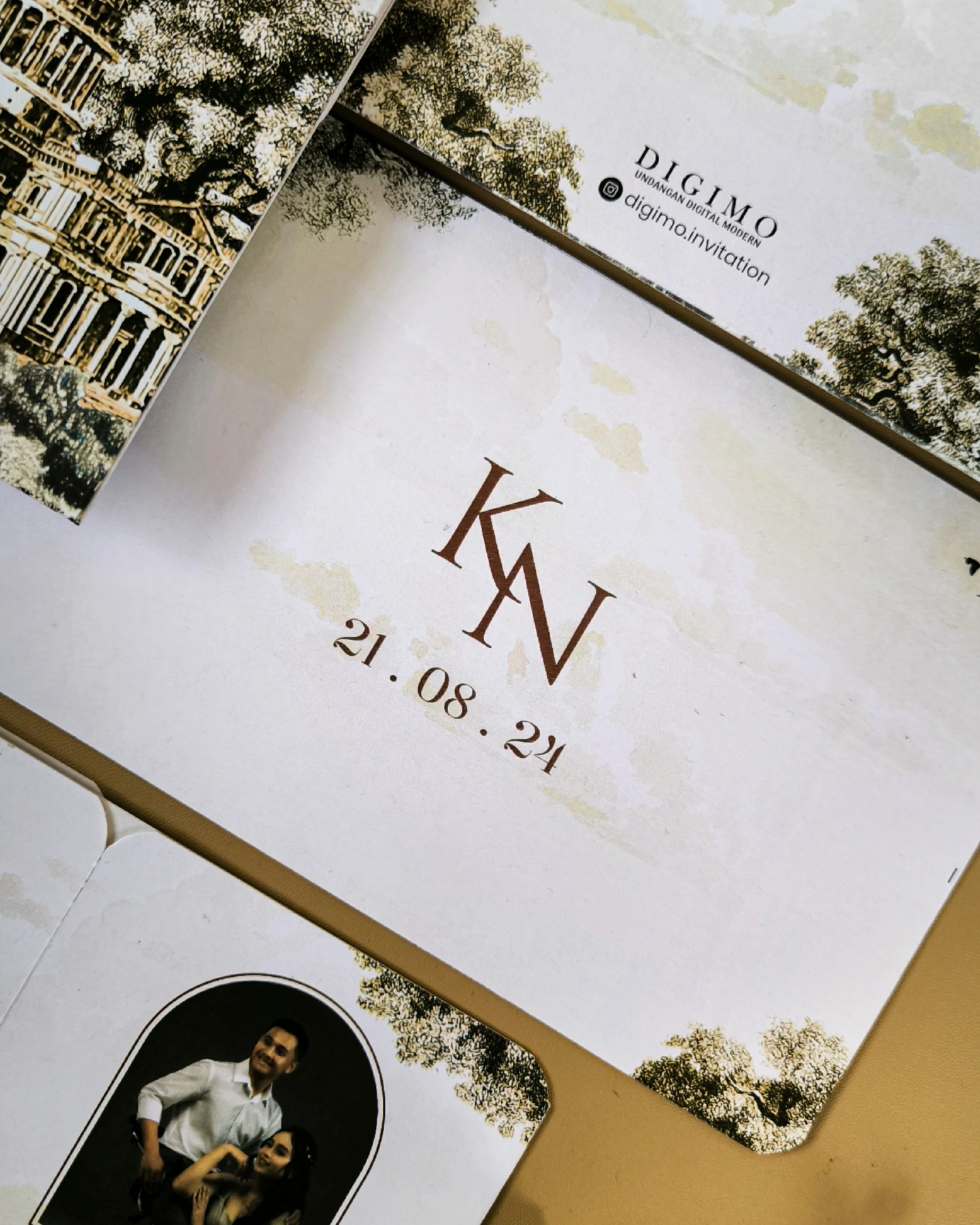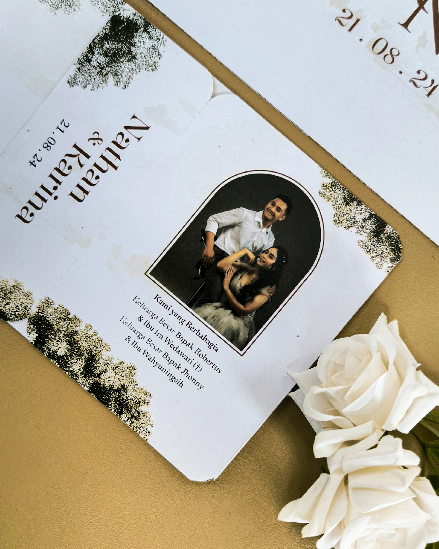 Amplop dirancang dengan warna senada untuk menciptakan kesatuan visual yang harmonis, cocok untuk konsep pernikahan minimalis, rustic, klasik modern, hingga garden wedding. Detail kecil seperti lipatan presisi dan permukaan kertas yang halus menjadikan undangan terasa rapi dan berkelas saat dipegang.