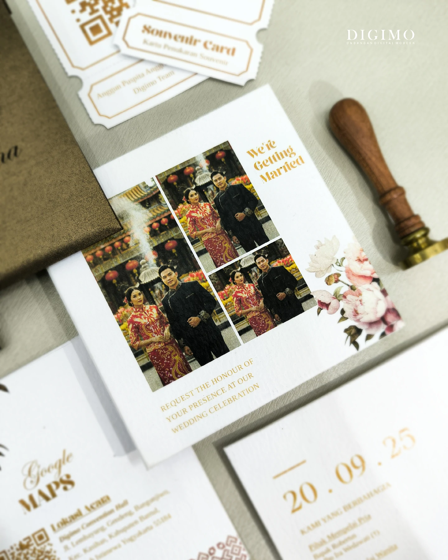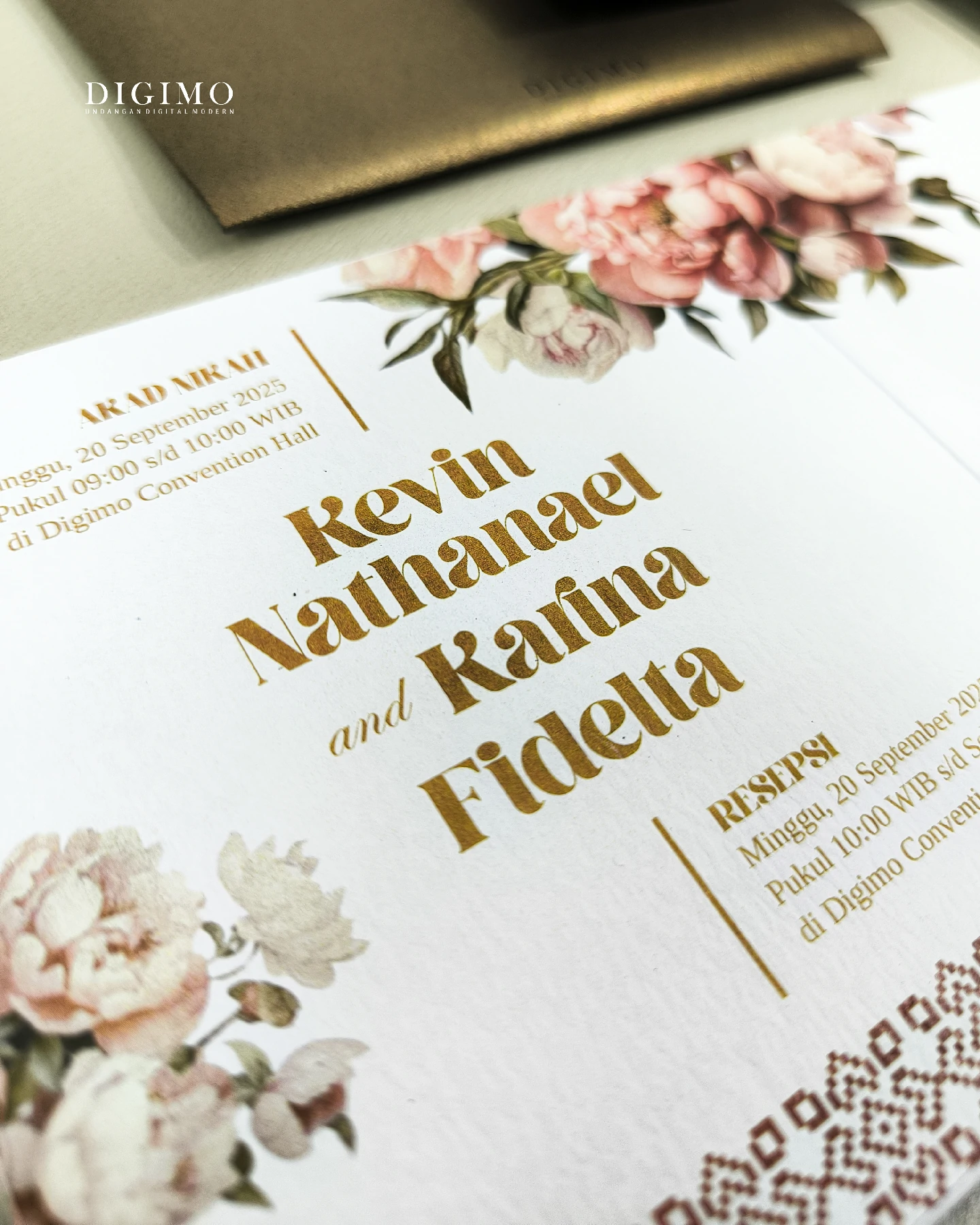 Amplop dirancang dengan warna senada untuk menciptakan kesatuan visual yang harmonis, cocok untuk konsep pernikahan minimalis, rustic, klasik modern, hingga garden wedding. Detail kecil seperti lipatan presisi dan permukaan kertas yang halus menjadikan undangan terasa rapi dan berkelas saat dipegang.