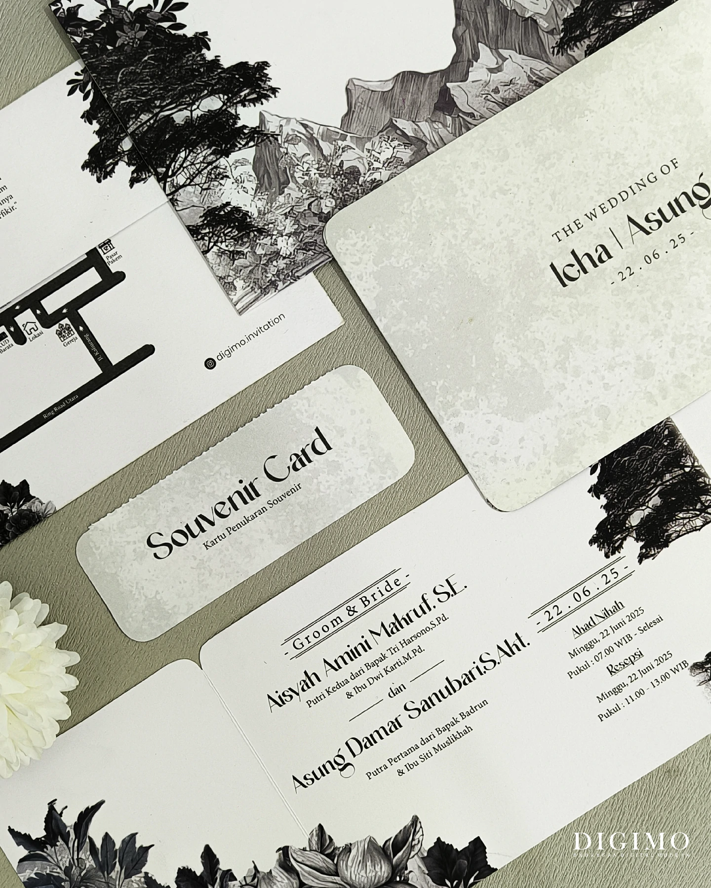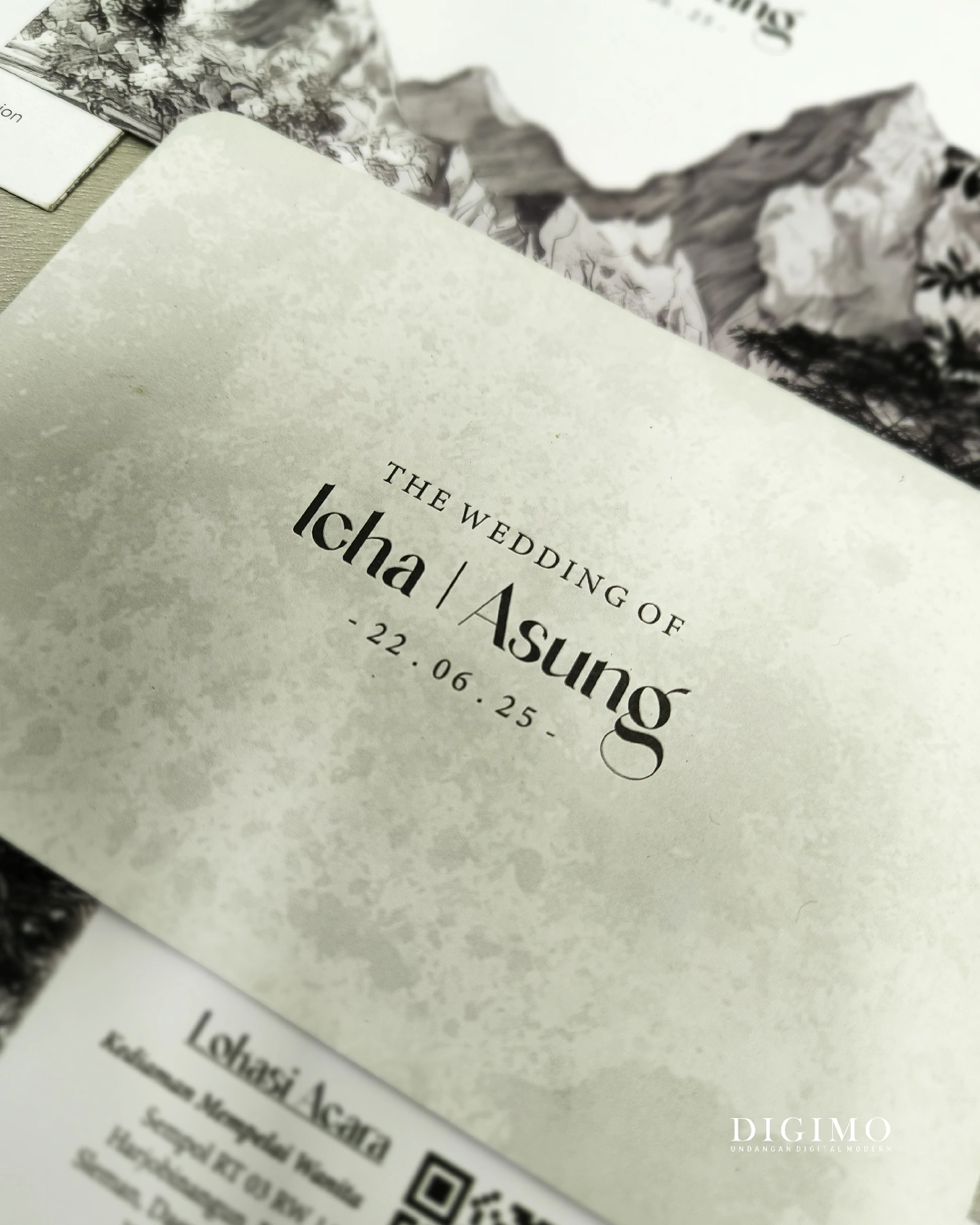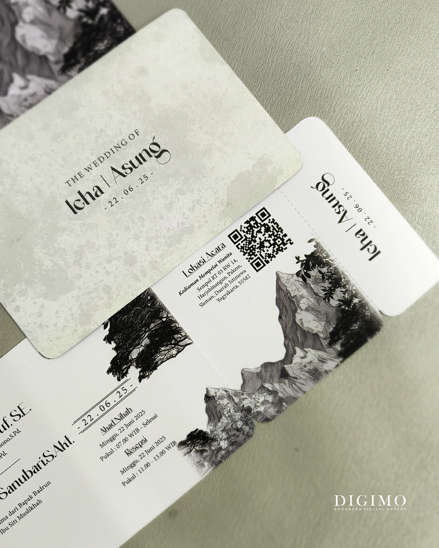 Amplop dirancang dengan warna senada untuk menciptakan kesatuan visual yang harmonis, cocok untuk konsep pernikahan minimalis, rustic, klasik modern, hingga garden wedding. Detail kecil seperti lipatan presisi dan permukaan kertas yang halus menjadikan undangan terasa rapi dan berkelas saat dipegang.