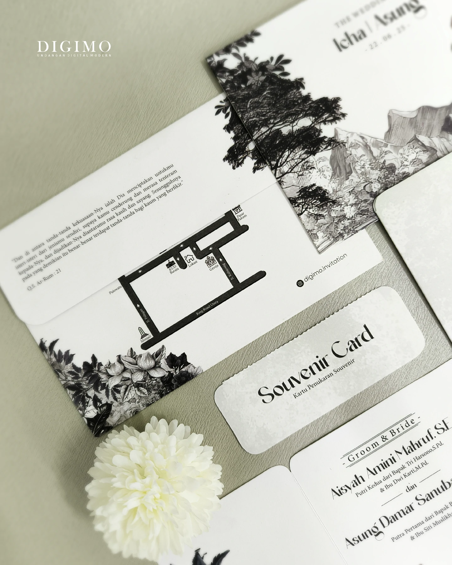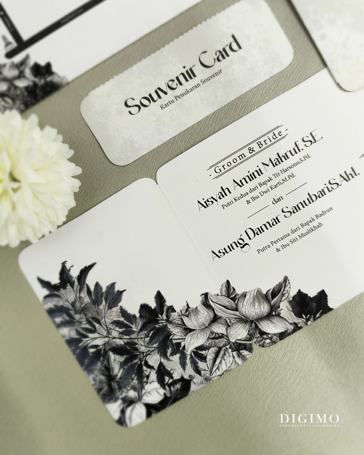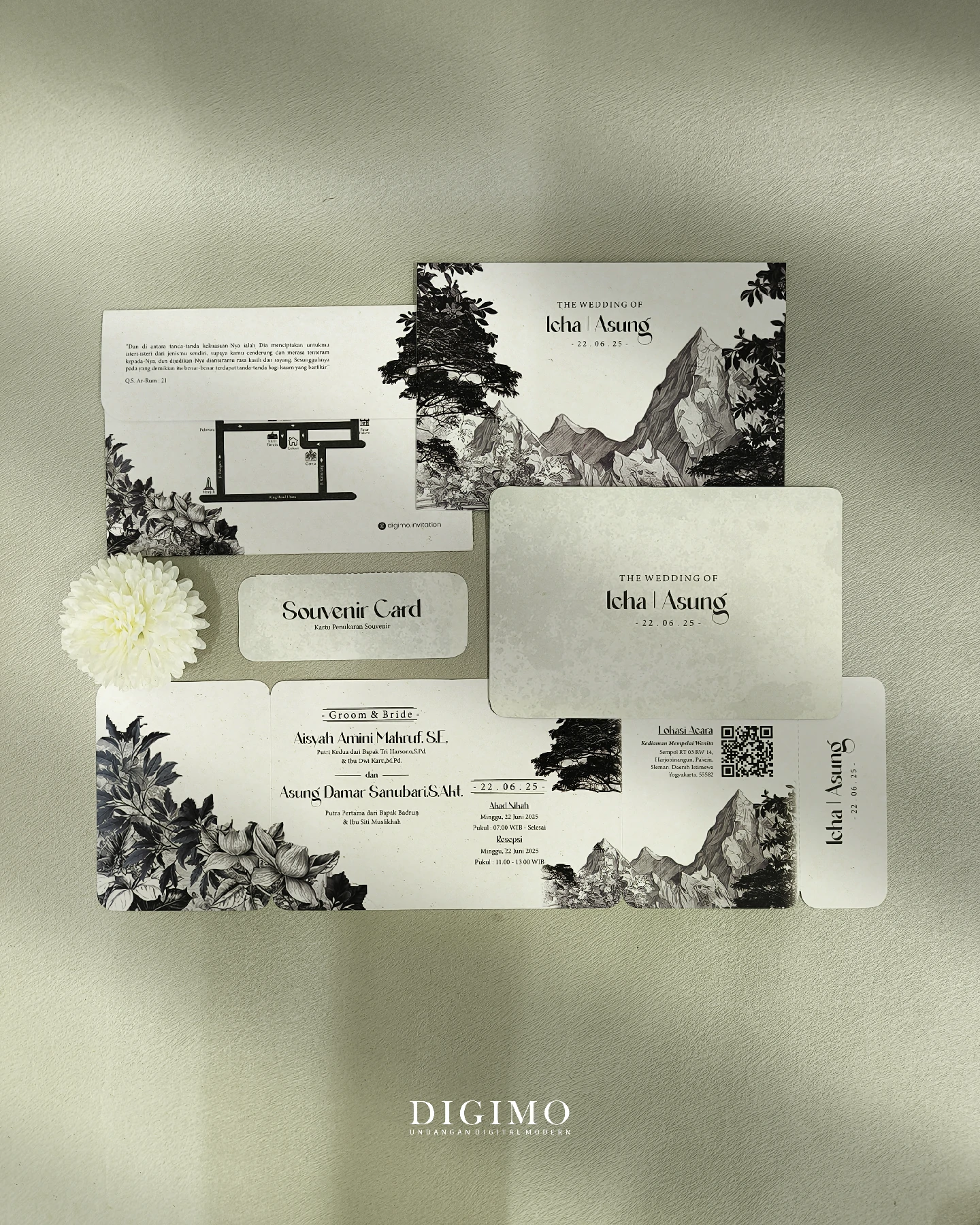 Amplop dirancang dengan warna senada untuk menciptakan kesatuan visual yang harmonis, cocok untuk konsep pernikahan minimalis, rustic, klasik modern, hingga garden wedding. Detail kecil seperti lipatan presisi dan permukaan kertas yang halus menjadikan undangan terasa rapi dan berkelas saat dipegang.