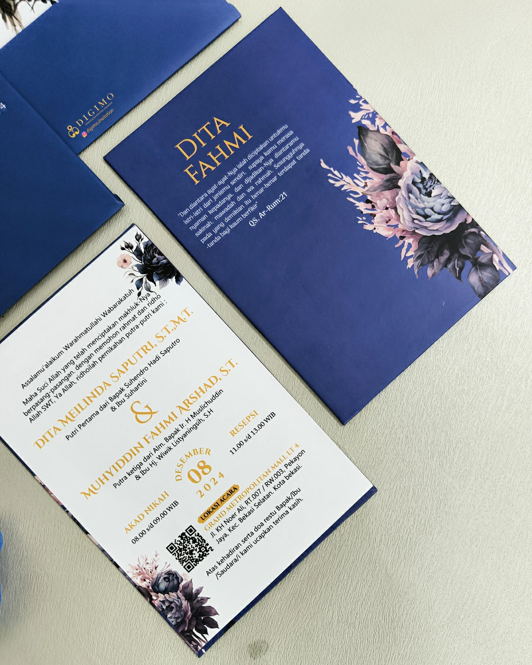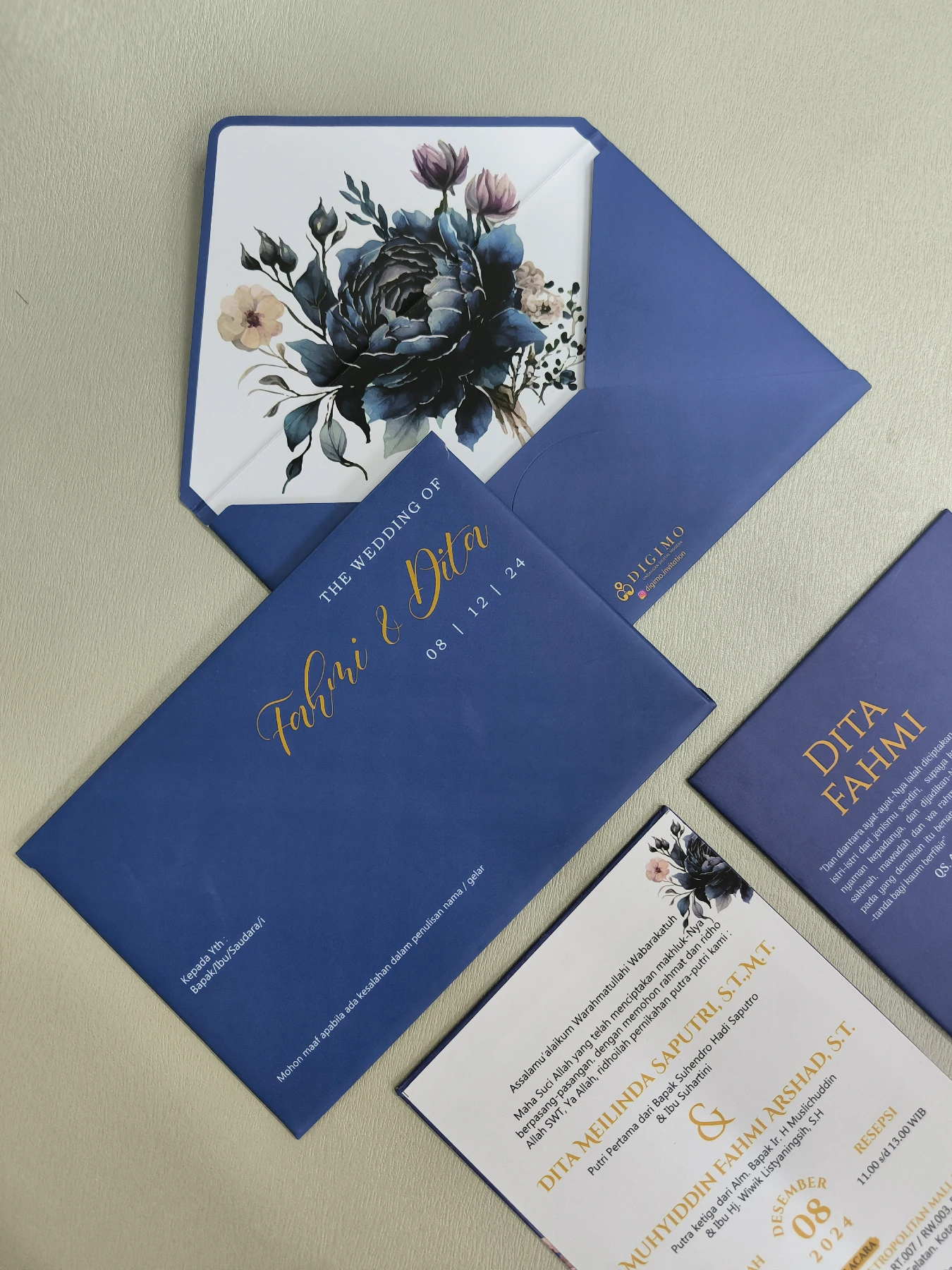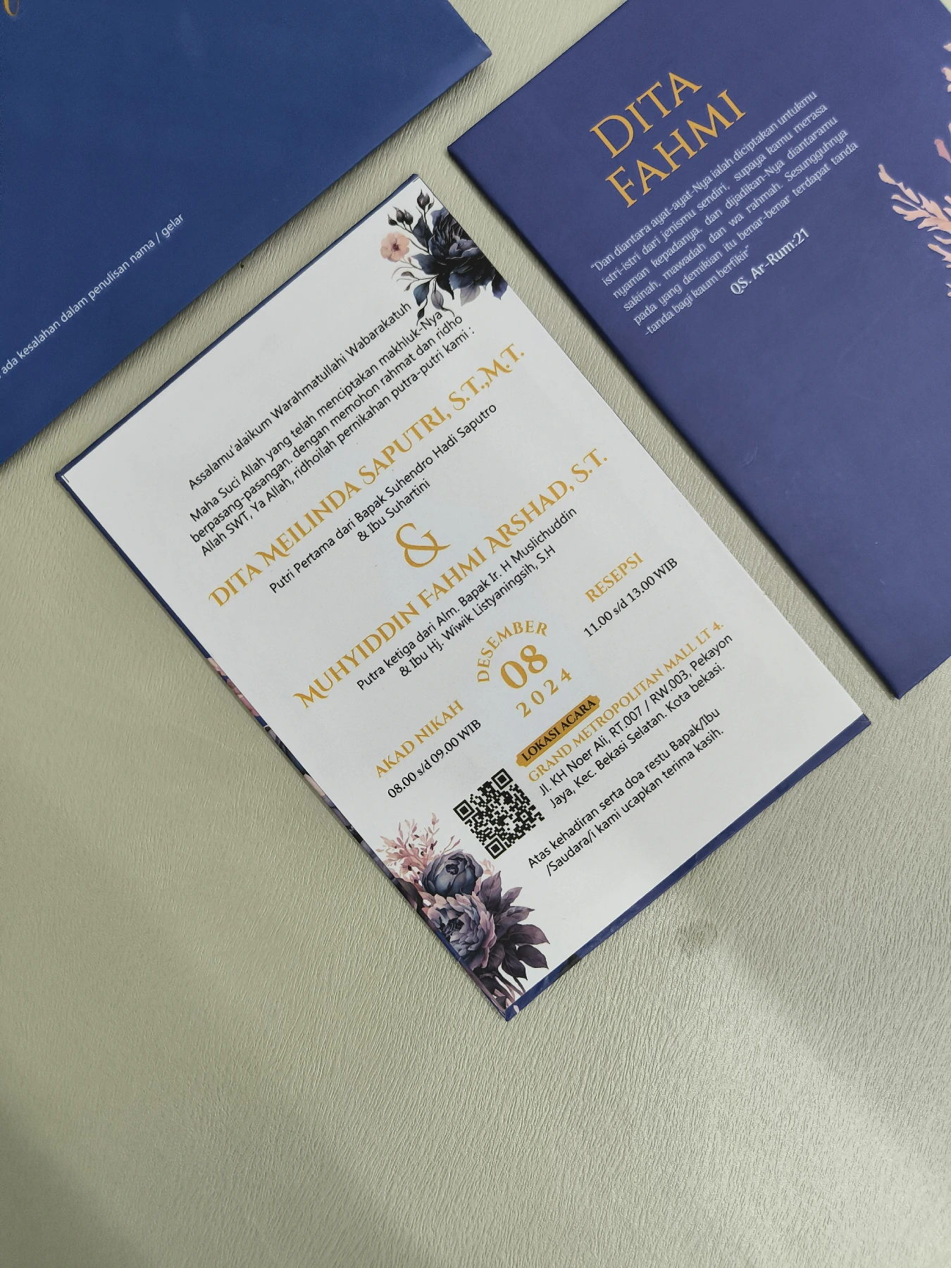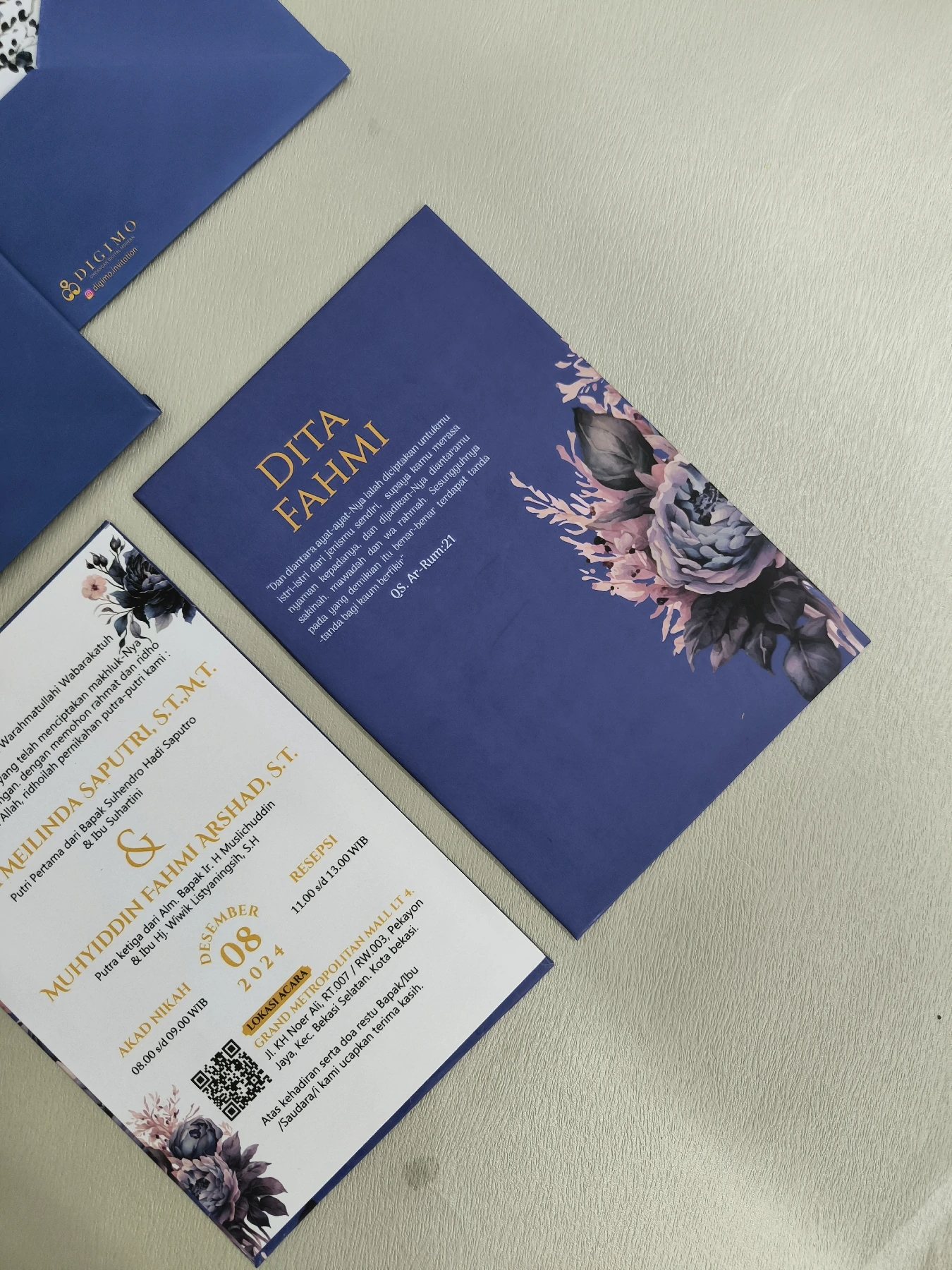 Amplop dirancang dengan warna senada untuk menciptakan kesatuan visual yang harmonis, cocok untuk konsep pernikahan minimalis, rustic, klasik modern, hingga garden wedding. Detail kecil seperti lipatan presisi dan permukaan kertas yang halus menjadikan undangan terasa rapi dan berkelas saat dipegang.