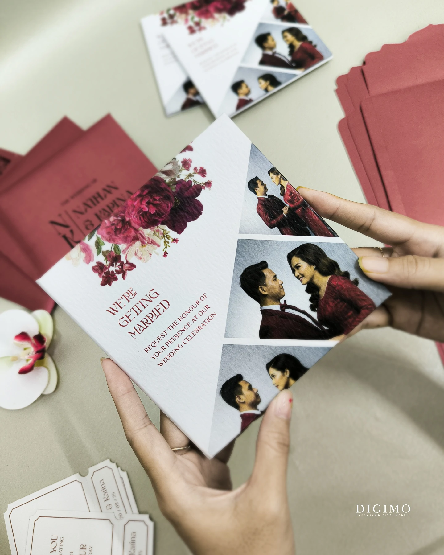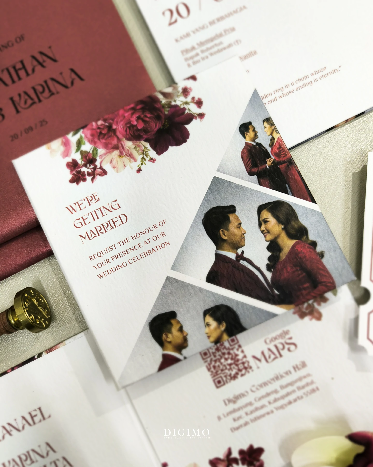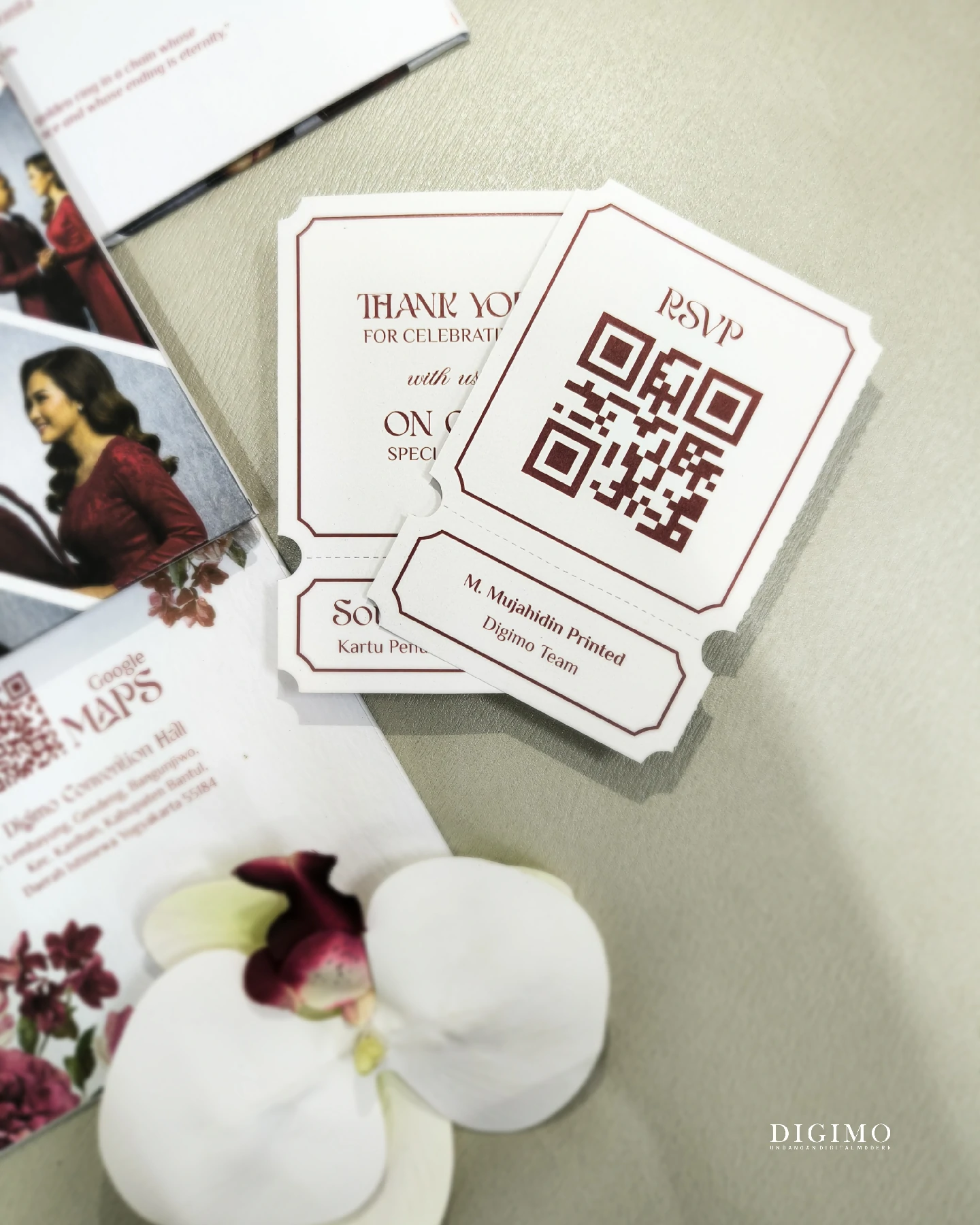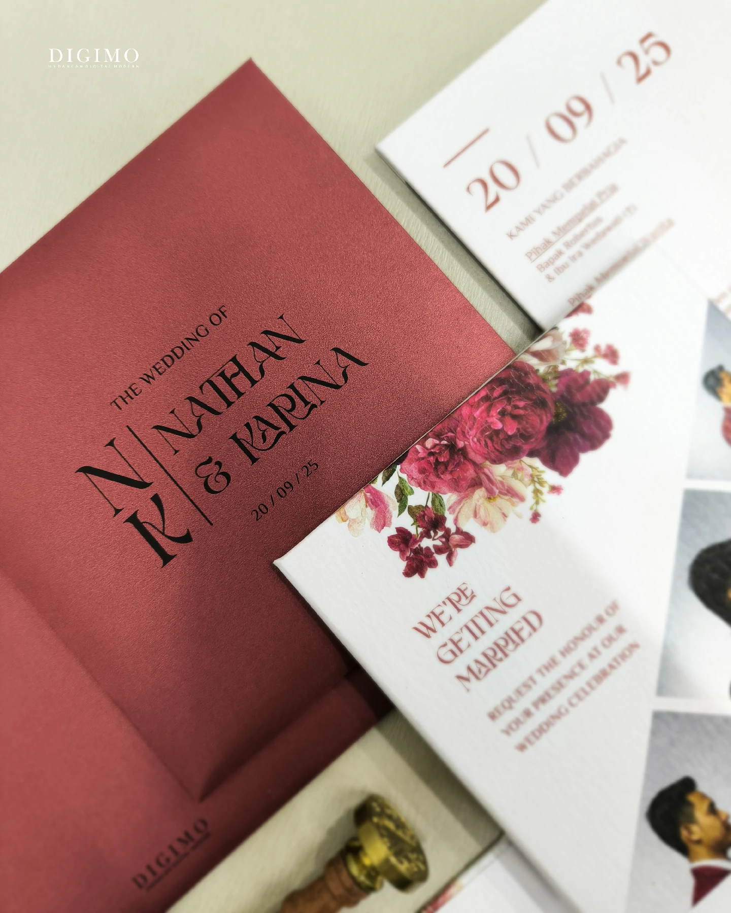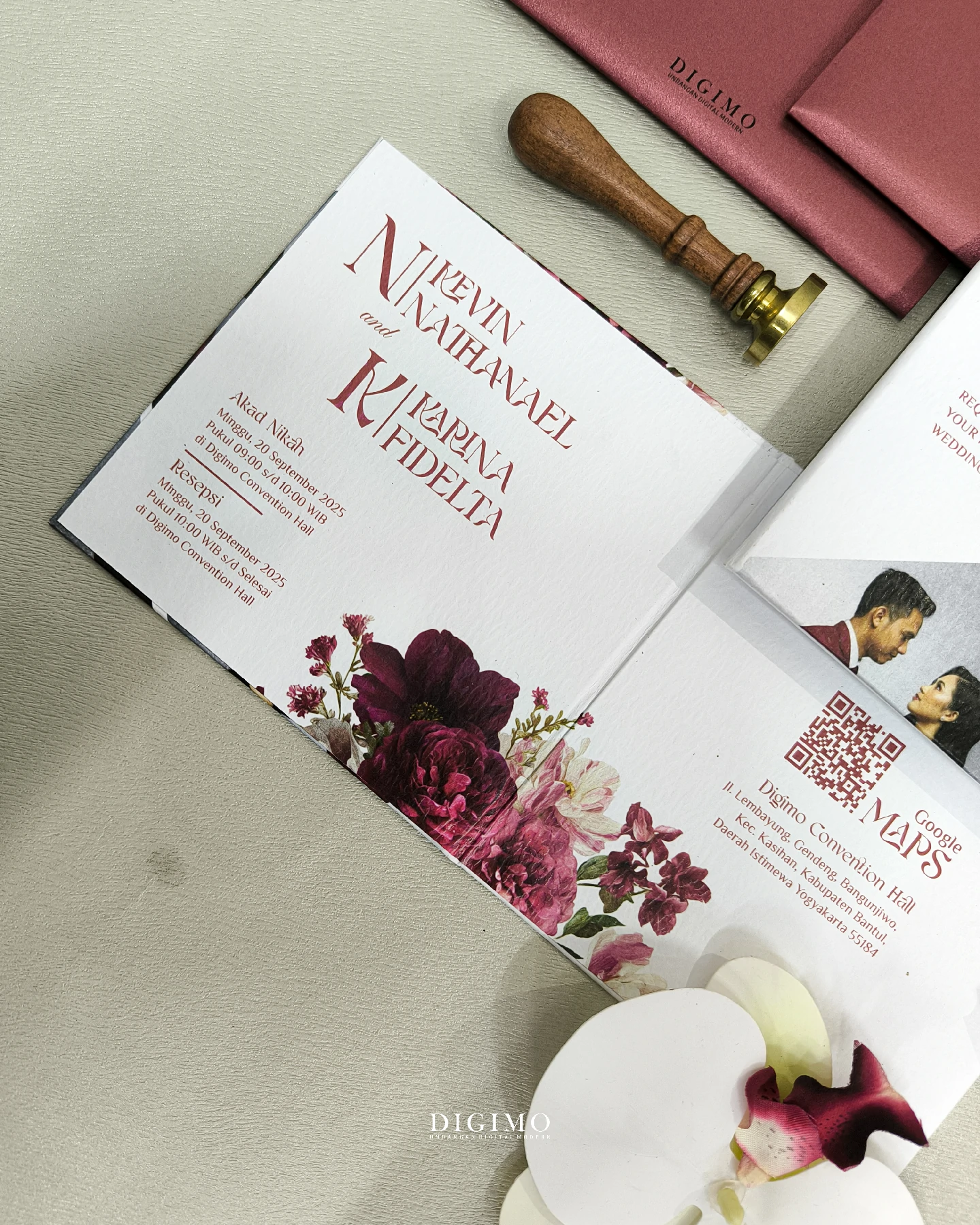Amplop dirancang dengan warna senada untuk menciptakan kesatuan visual yang harmonis, cocok untuk konsep pernikahan minimalis, rustic, klasik modern, hingga garden wedding. Detail kecil seperti lipatan presisi dan permukaan kertas yang halus menjadikan undangan terasa rapi dan berkelas saat dipegang.
