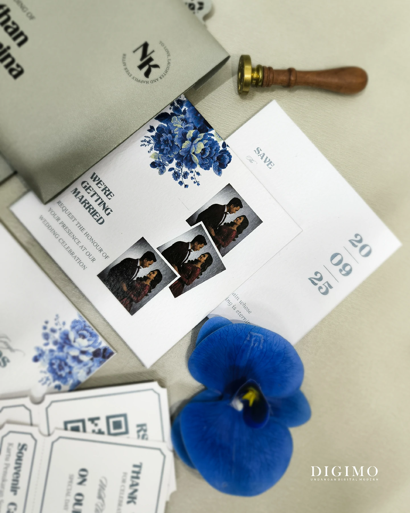 Amplop dirancang dengan warna senada untuk menciptakan kesatuan visual yang harmonis, cocok untuk konsep pernikahan minimalis, rustic, klasik modern, hingga garden wedding. Detail kecil seperti lipatan presisi dan permukaan kertas yang halus menjadikan undangan terasa rapi dan berkelas saat dipegang.