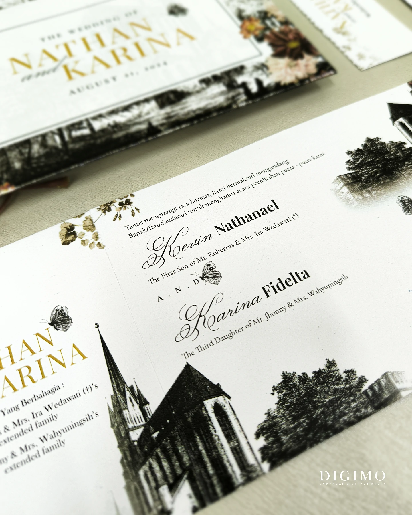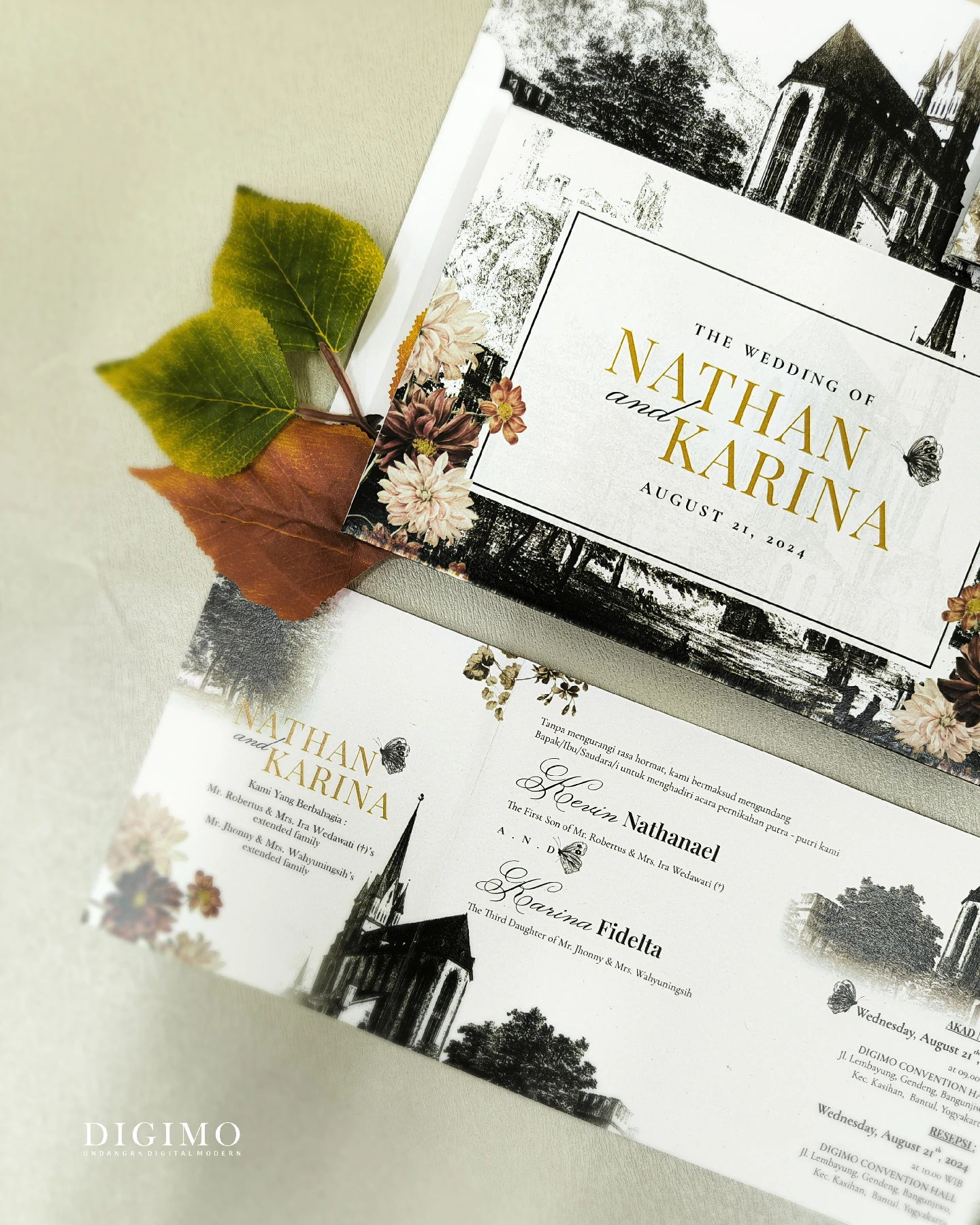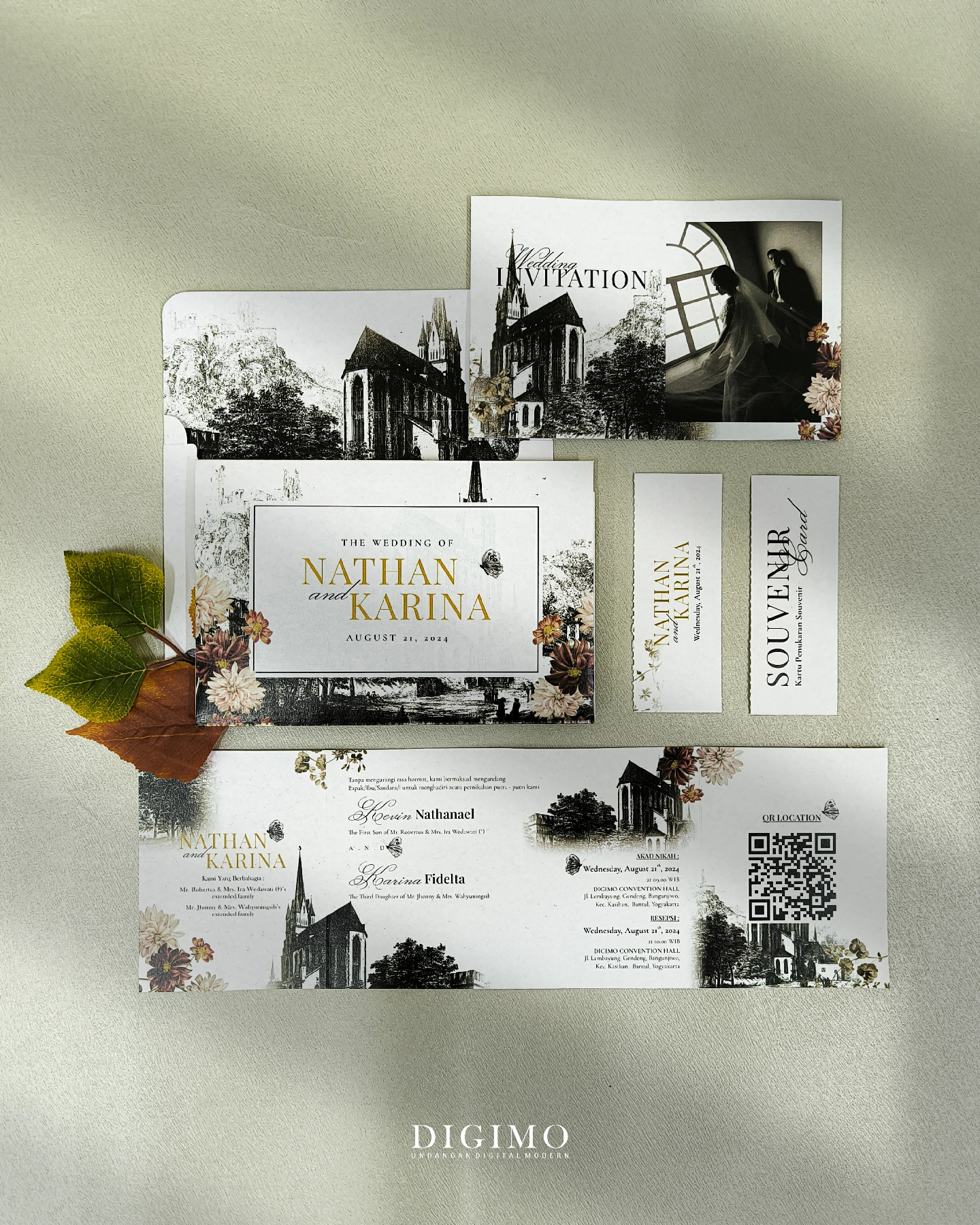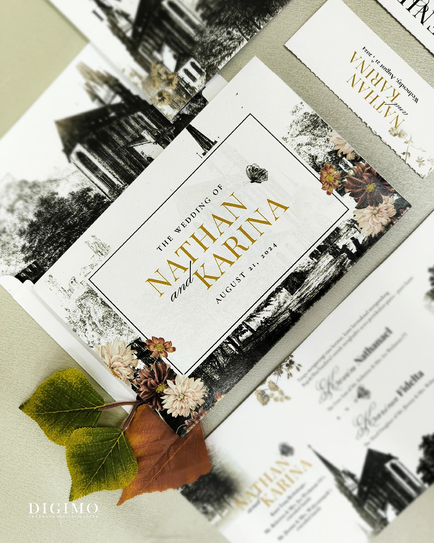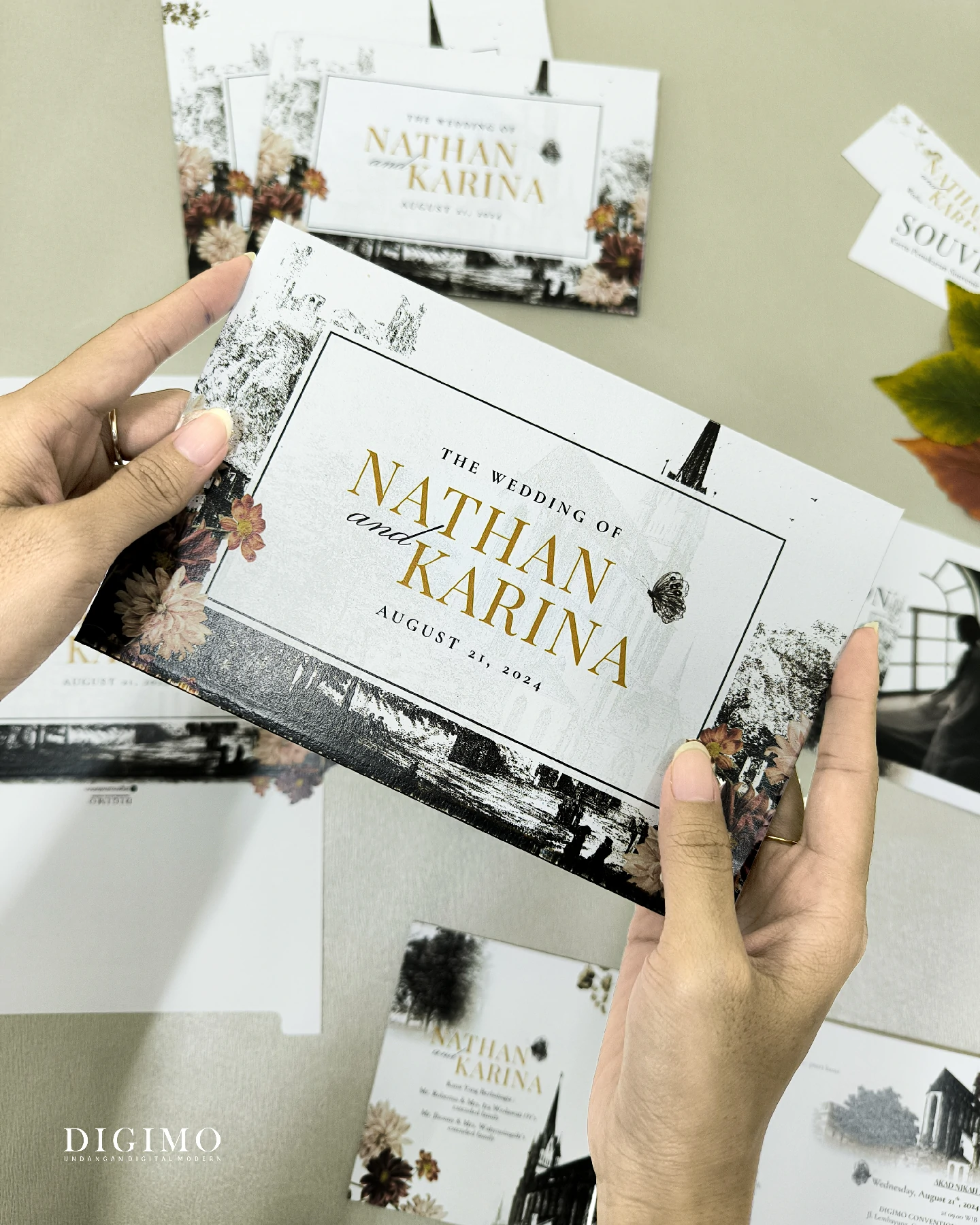 Amplop dirancang dengan warna senada untuk menciptakan kesatuan visual yang harmonis, cocok untuk konsep pernikahan minimalis, rustic, klasik modern, hingga garden wedding. Detail kecil seperti lipatan presisi dan permukaan kertas yang halus menjadikan undangan terasa rapi dan berkelas saat dipegang.